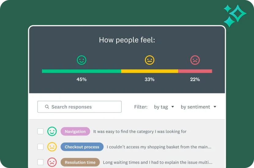 A pile of open-ended responses is a goldmine, but most teams dread reading hundreds of them. Professional text analysis (powered by NLP) automatically identifies key themes, sentiment (positive, negative, neutral), and even emerging topics within unstructured data.